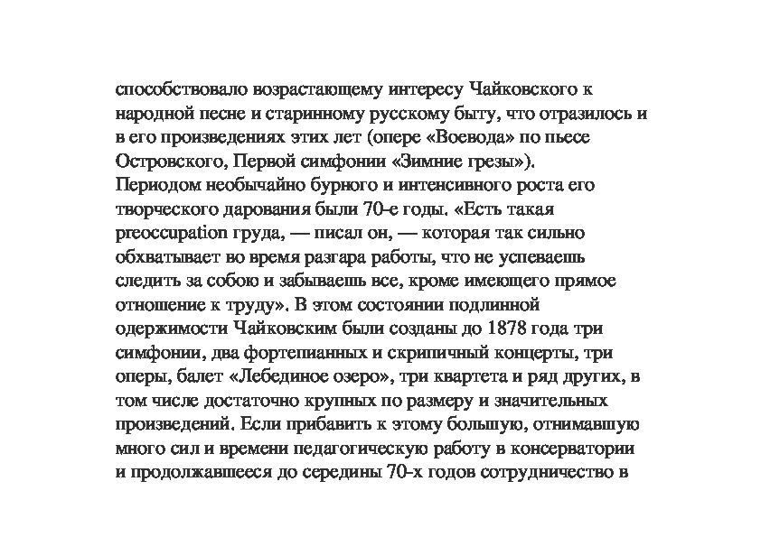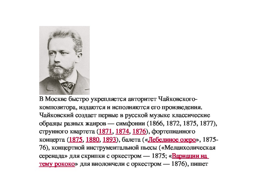 концерта (1875, 1880, 1893), балета («Лебединое озеро», 1875