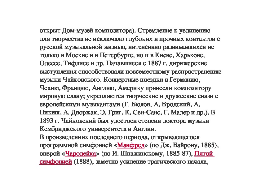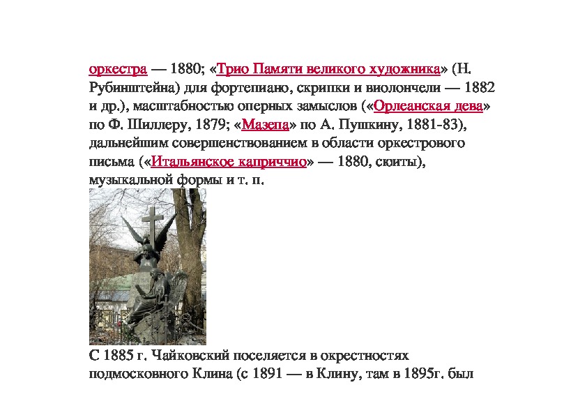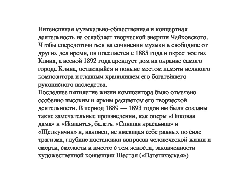 подмосковного Клина (с 1891 — в Клину, там в 1895г. былоткрыт Доммузей композитора). Стремление к уединению