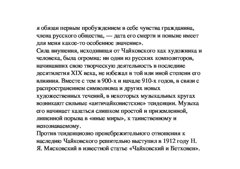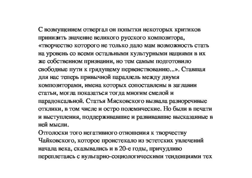 Я. Мясковский в известной статье «Чайковский и Бетховен».С возмущением отвергал он попытки некоторых критиков