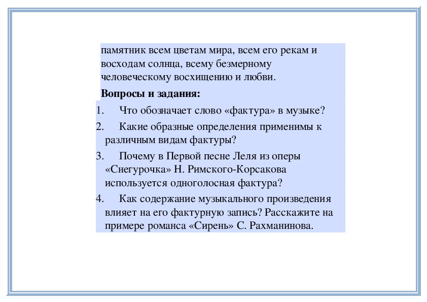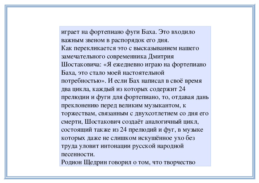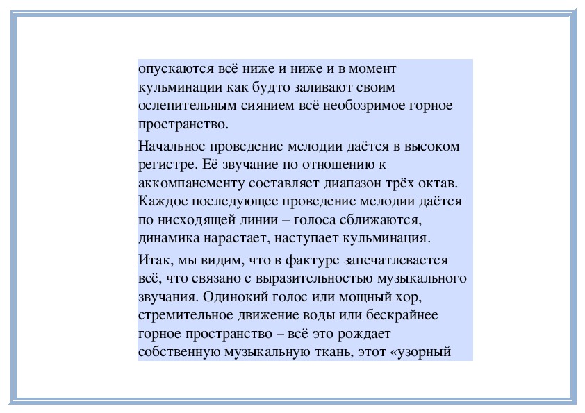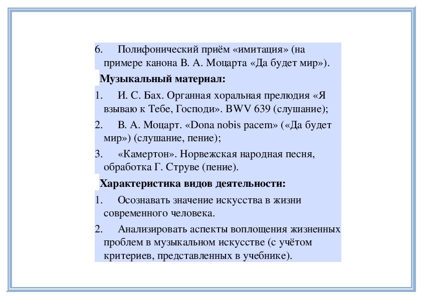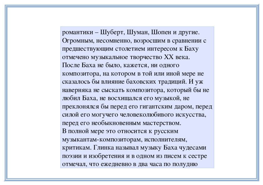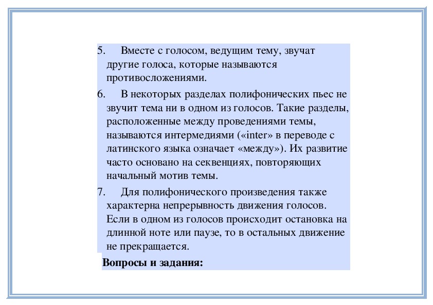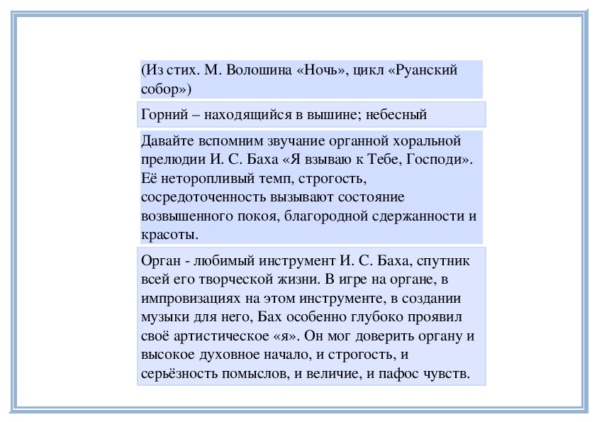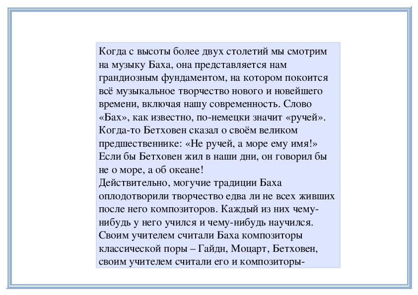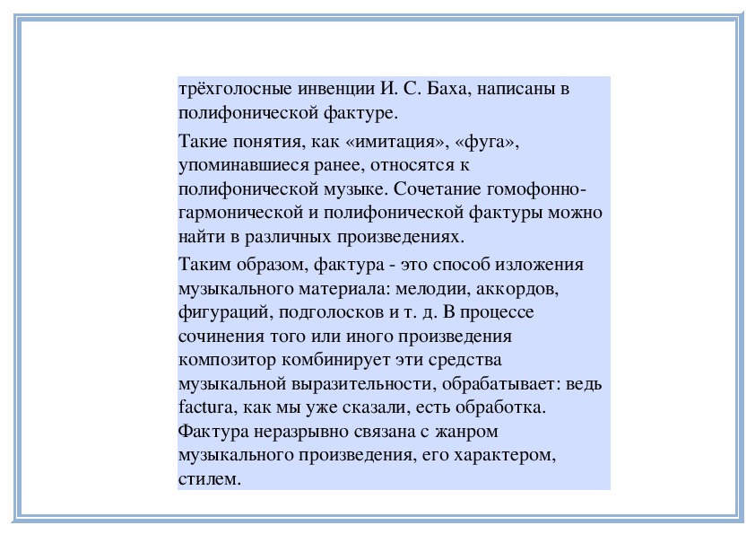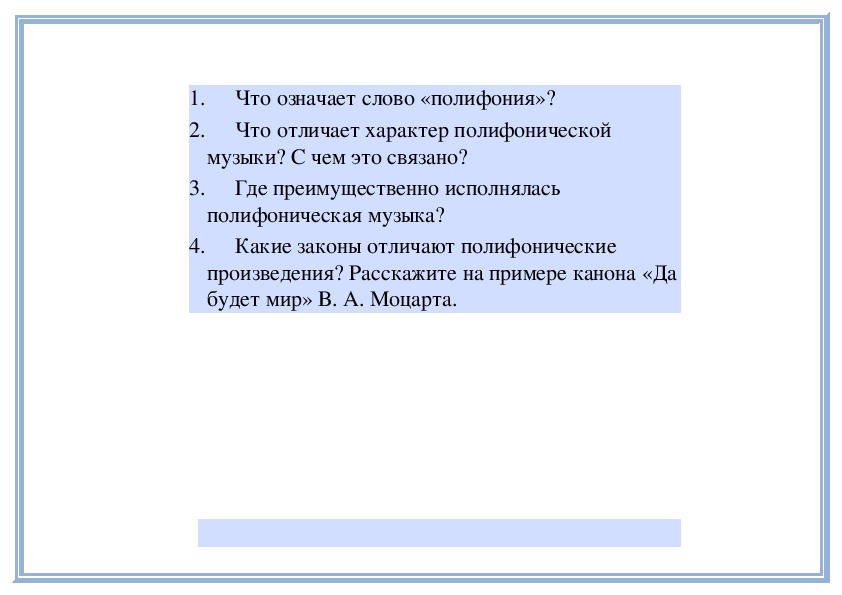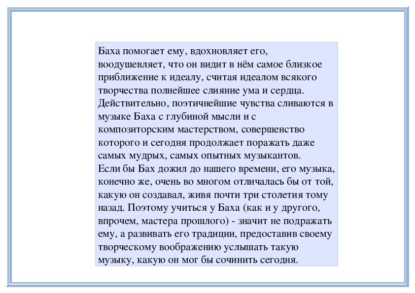 Точно так же свет и покой излучает полифоническая музыка. Её воздействие на душу человека всегда было необыкновенно возвышающим, облагораживающим.