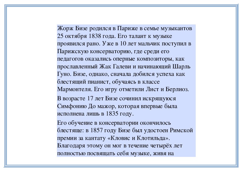 2. Ж. Бизе. «Утро в горах». Антракт к III