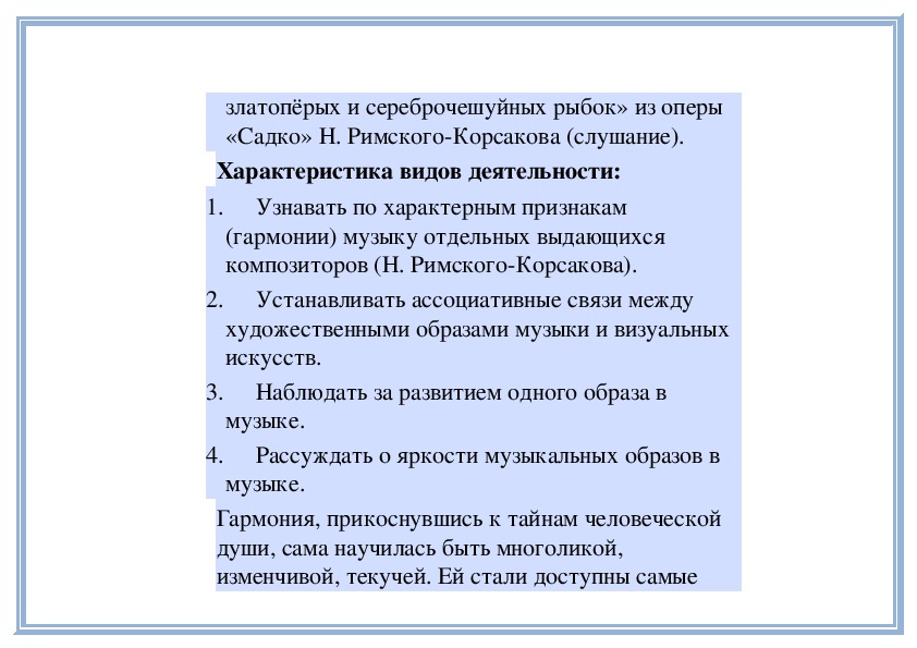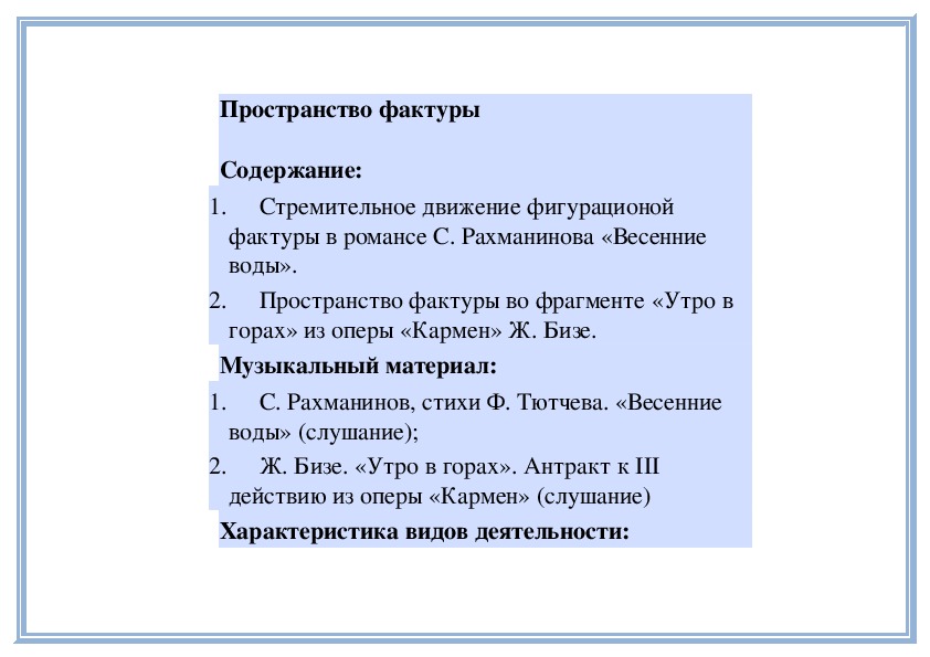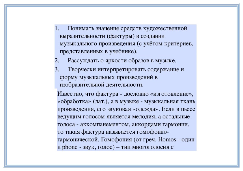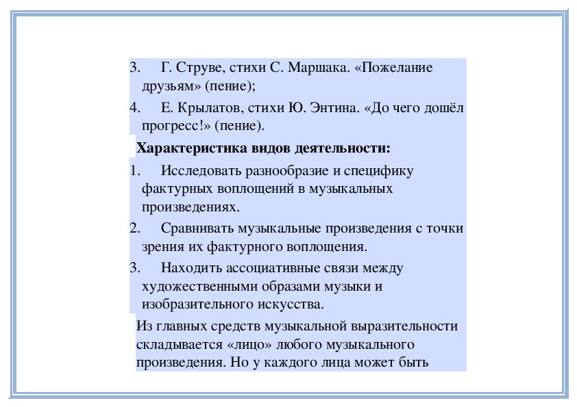 Характеристика видов деятельности:1. Понимать значение средств художественной