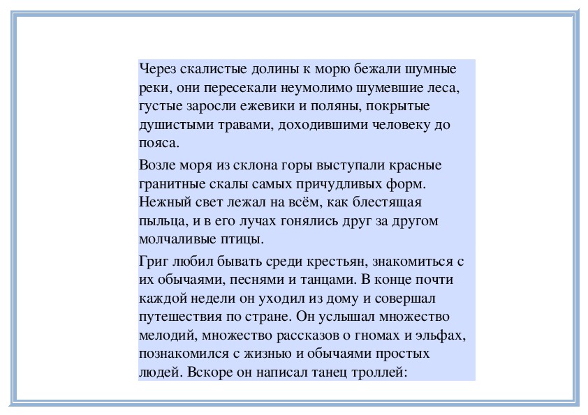 людей. Вскоре он написал танец троллей:норвежцы думают, что это крошечные духи,