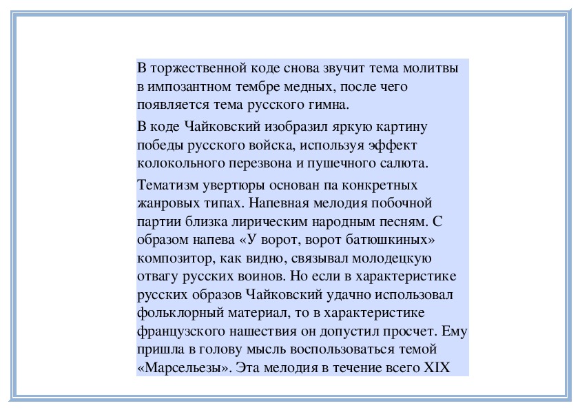 значение в разработке и репризе сонатной формы.В торжественной коде снова звучит тема молитвы
