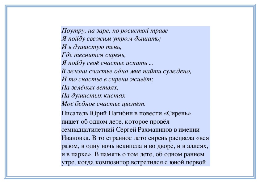1. С. Рахманинов, стихи Ф. Тютчева. «Весенние