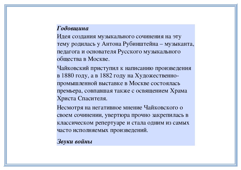 Звуки войныУвертюра описывает вторжение армии Наполеона