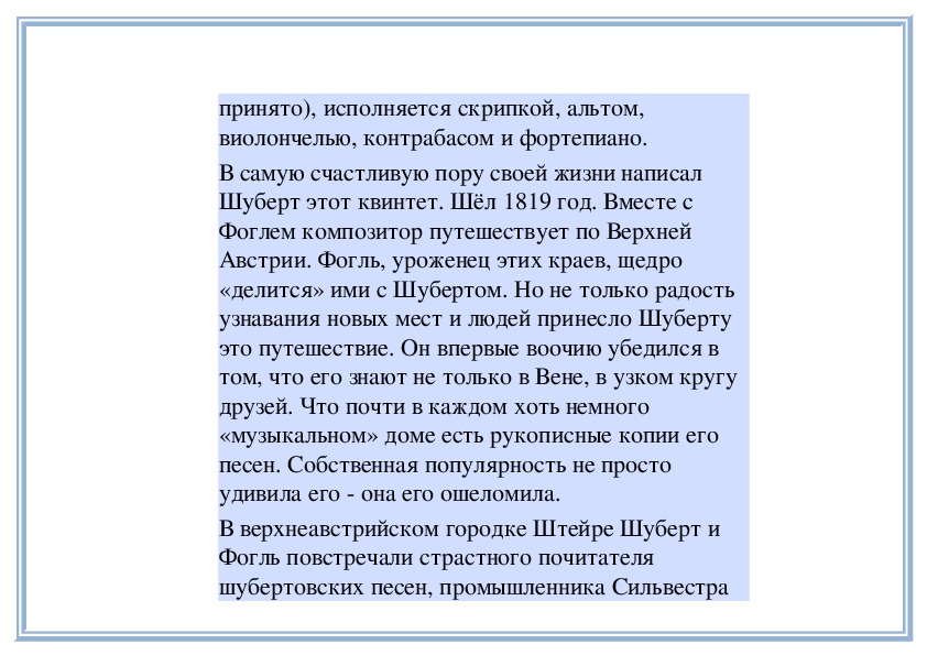 Шуберт этот квинтет. Шёл 1819 год. Вместе с