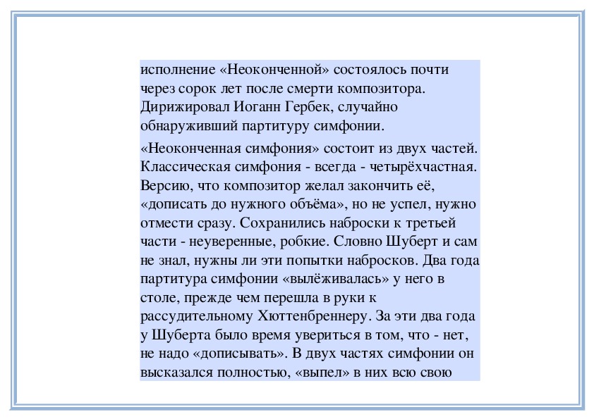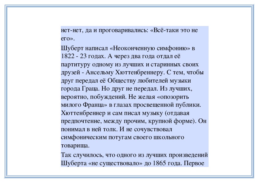 Шуберта «не существовало» до 1865 года. Первоеисполнение «Неоконченной» состоялось почти