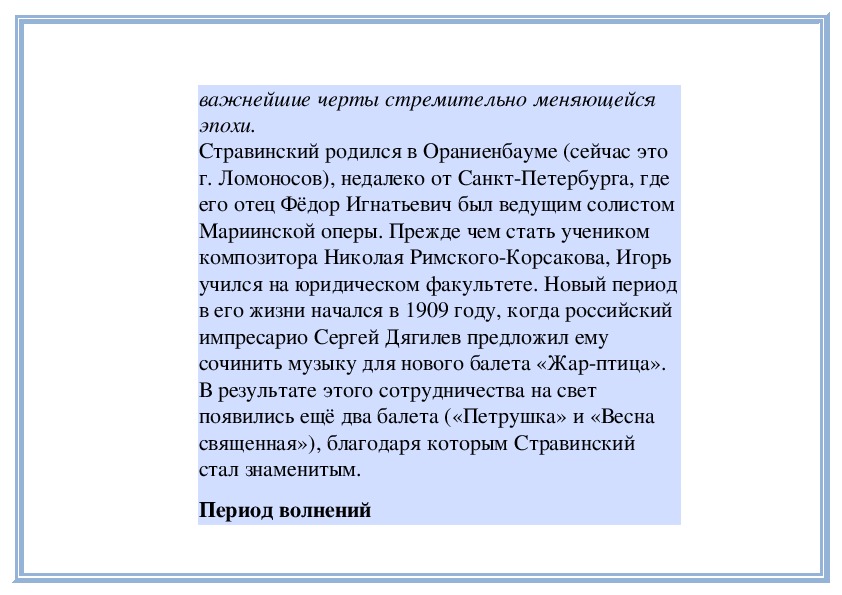 вот далеко не полный перечень произведений,определивших музыкальное направление первой