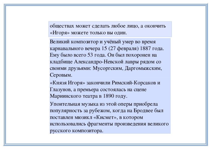композитору, что «Игоря» надо закончить во что