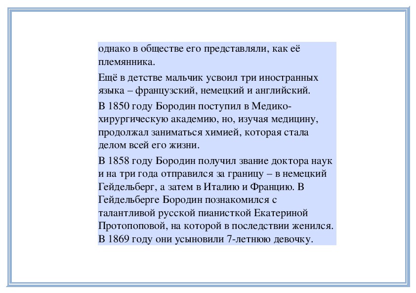 В 1850 году Бородин поступил в Медико