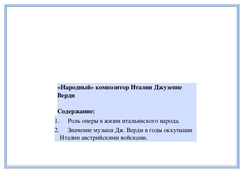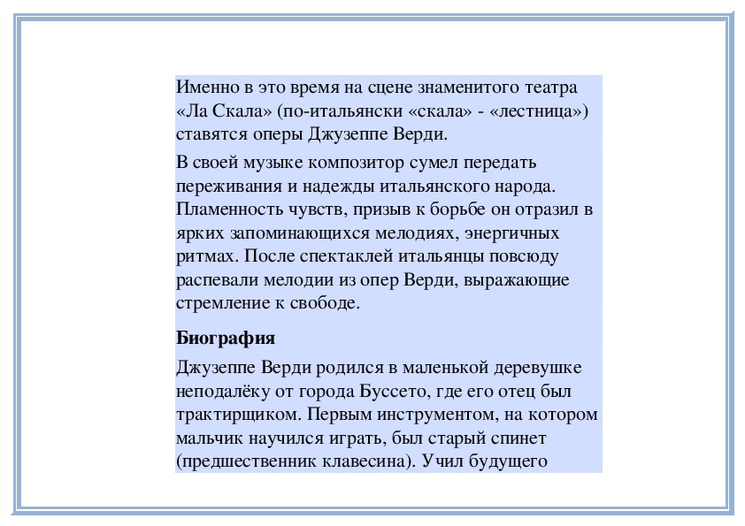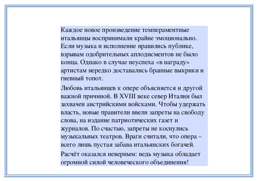 побывать в Италии – на родине оперы, родинепрекрасного пения – бельканто (bel canto по