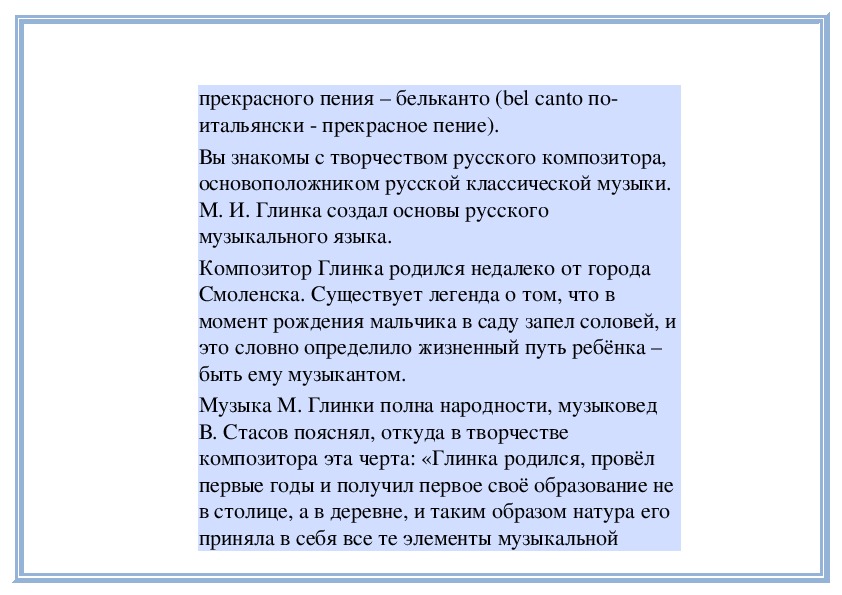 М. И. Глинка создал основы русского
