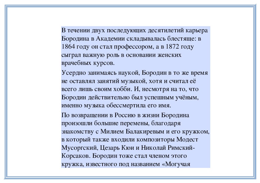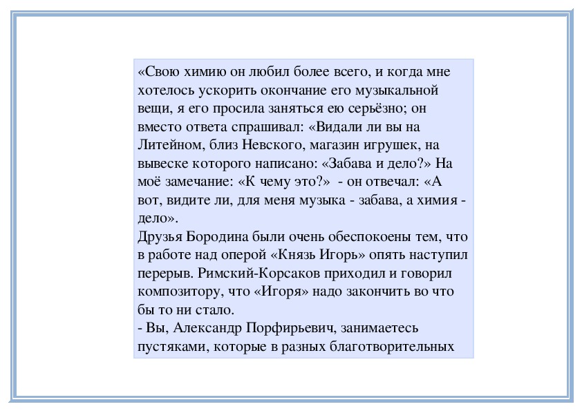 Усердно занимаясь наукой, Бородин в то же время