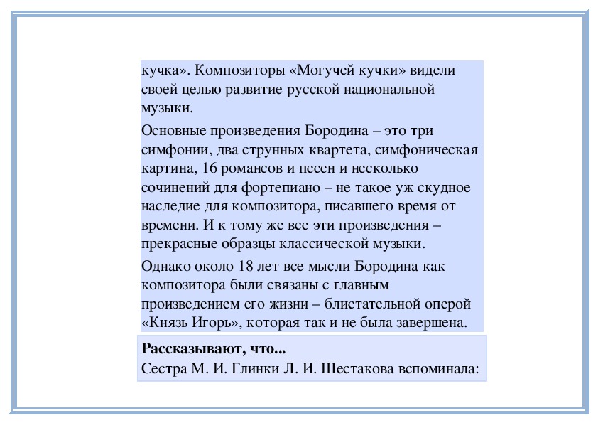 кружка, известного под названием «Могучаякучка». Композиторы «Могучей кучки» видели