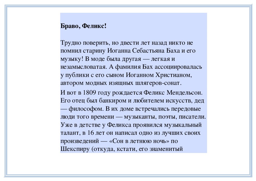 Шекспиру (откуда, кстати, его знаменитыйсвадебный марш). Юношу ждала блестящая