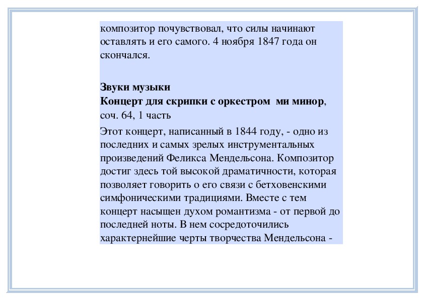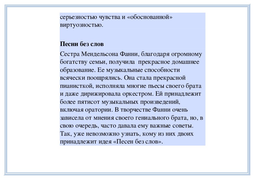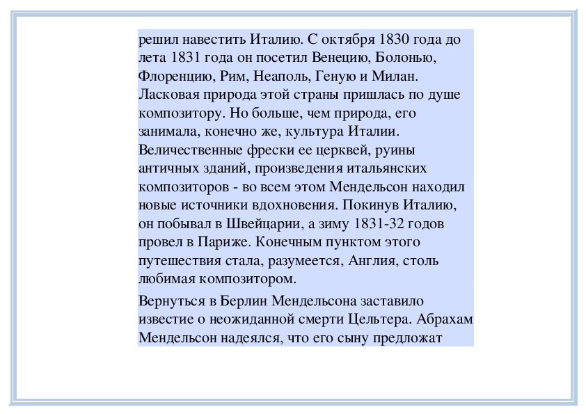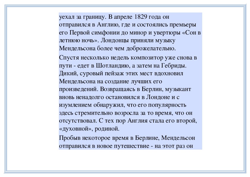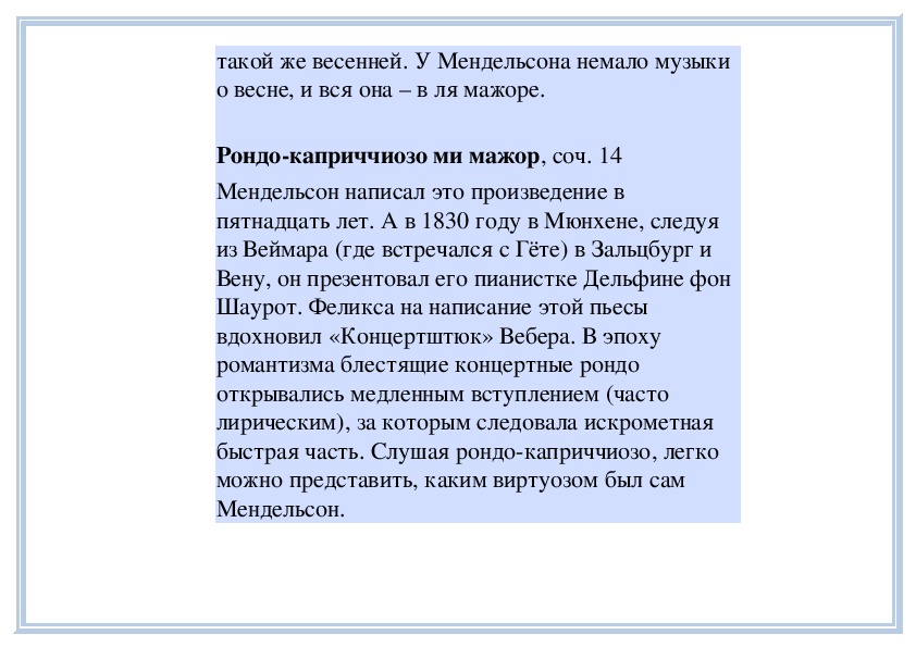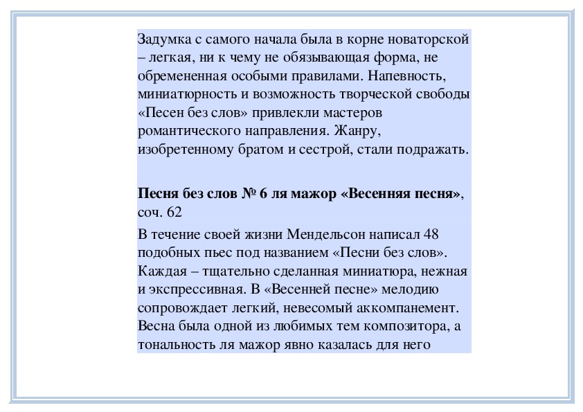 тональность ля мажор явно казалась для неготакой же весенней. У Мендельсона немало музыки
