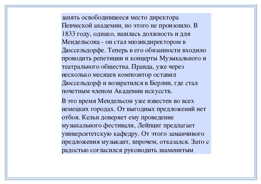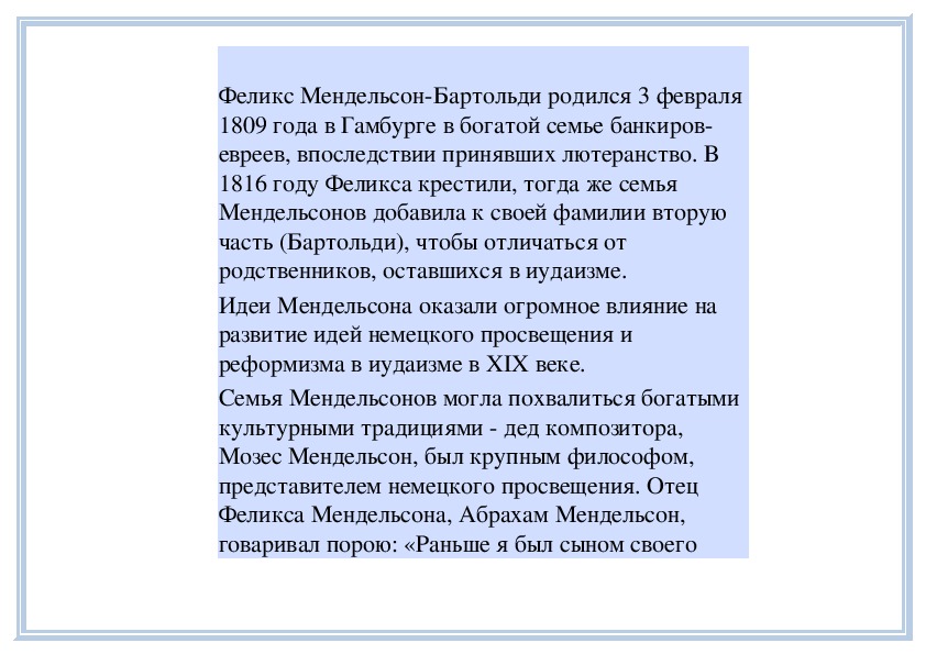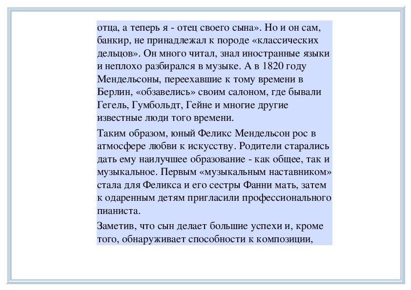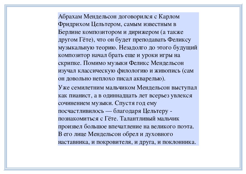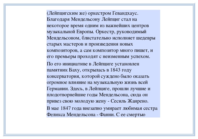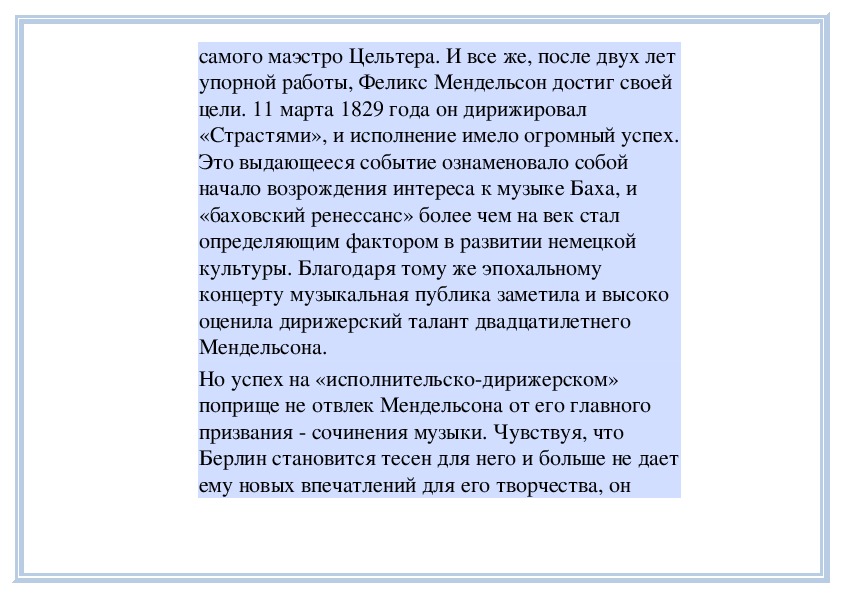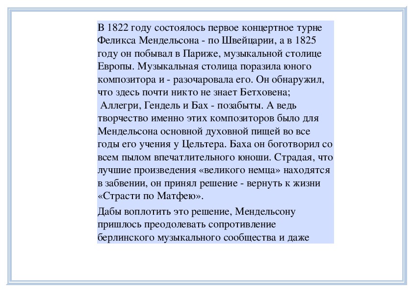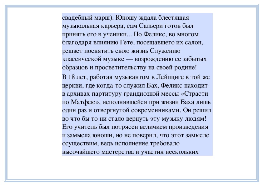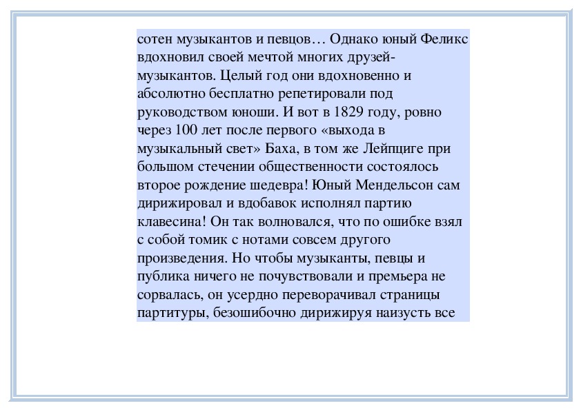 высочайшего мастерства и участия несколькихсотен музыкантов и певцов… Однако юный Феликс