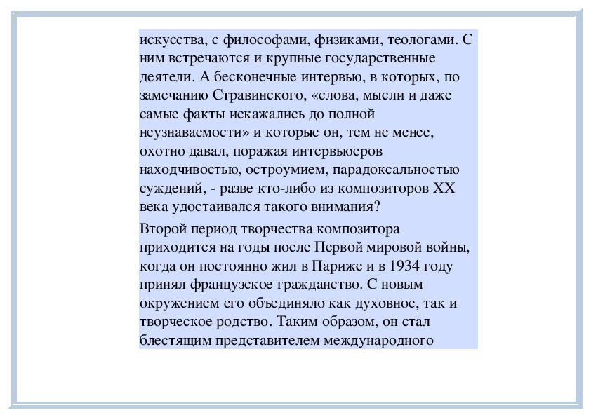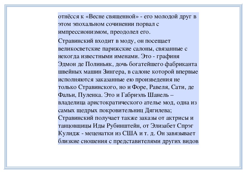 в сферы аристократической элиты Парижа.Где и как Стравинский знакомился с народной