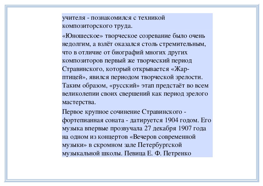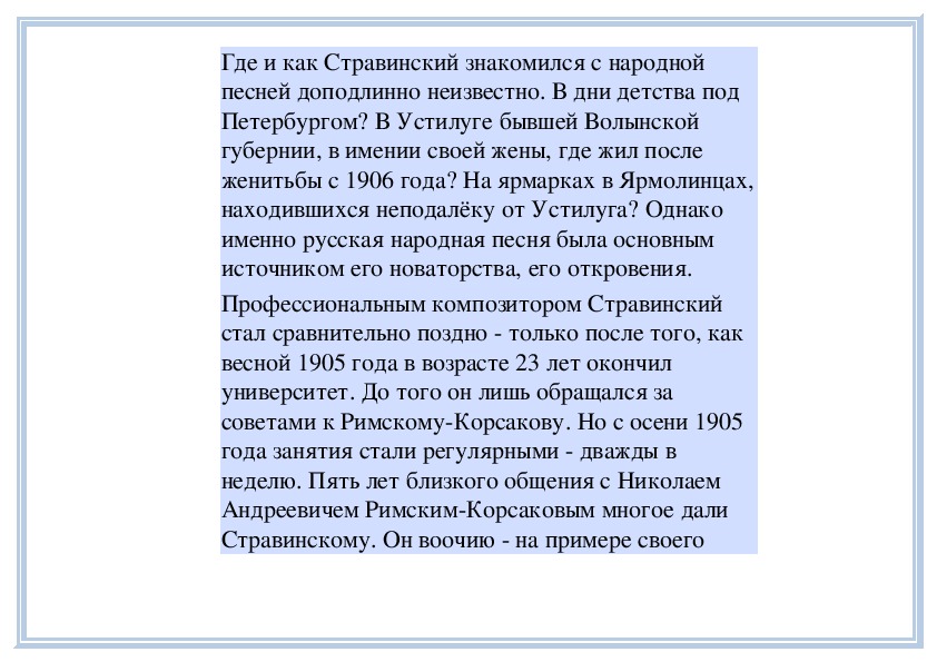 Стравинскому. Он воочию на примере своегоучителя познакомился с техникой