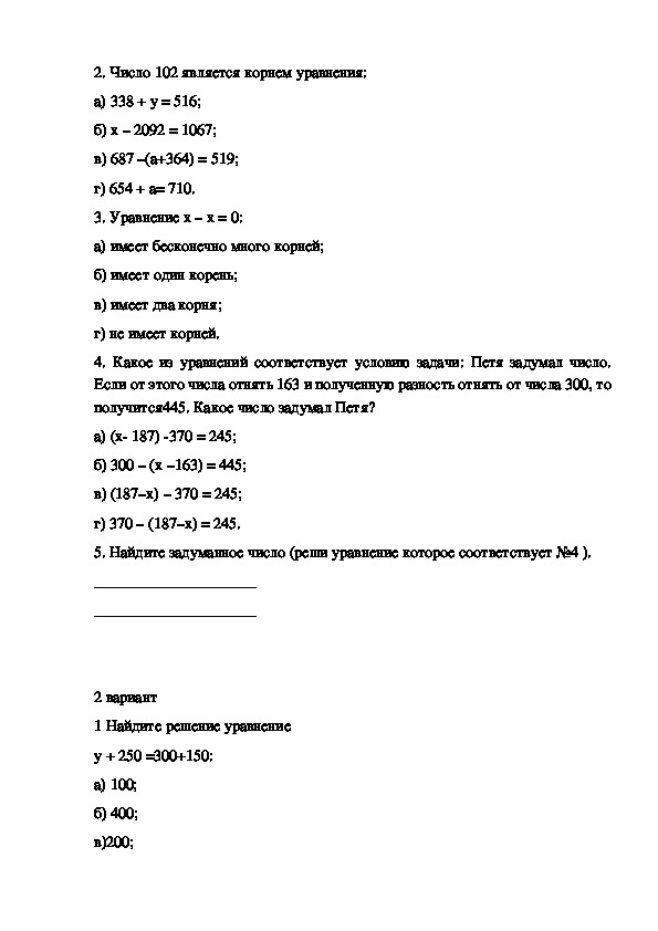 в) 200;2. Число 102 является корнем уравнения:
