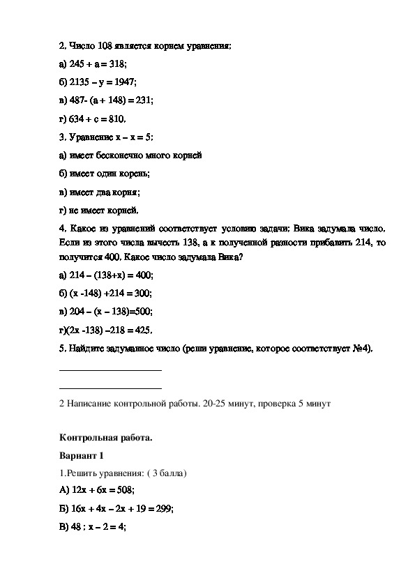 в)200;2. Число 108 является корнем уравнения: