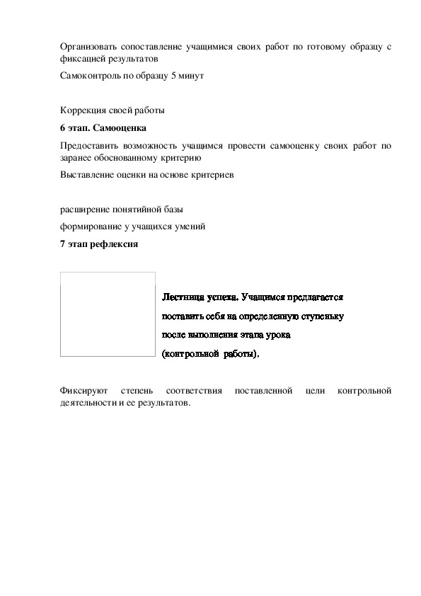 5 этап. Самоконтроль (взаимоконтроль)Организовать сопоставление учащимися своих работ по готовому образцу с