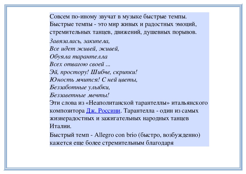 Быстрые темпы это мир живых и радостных эмоций,