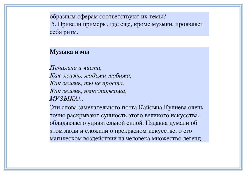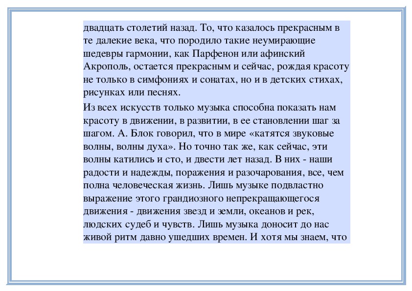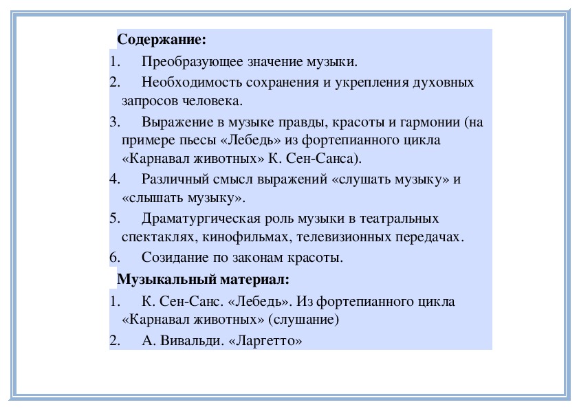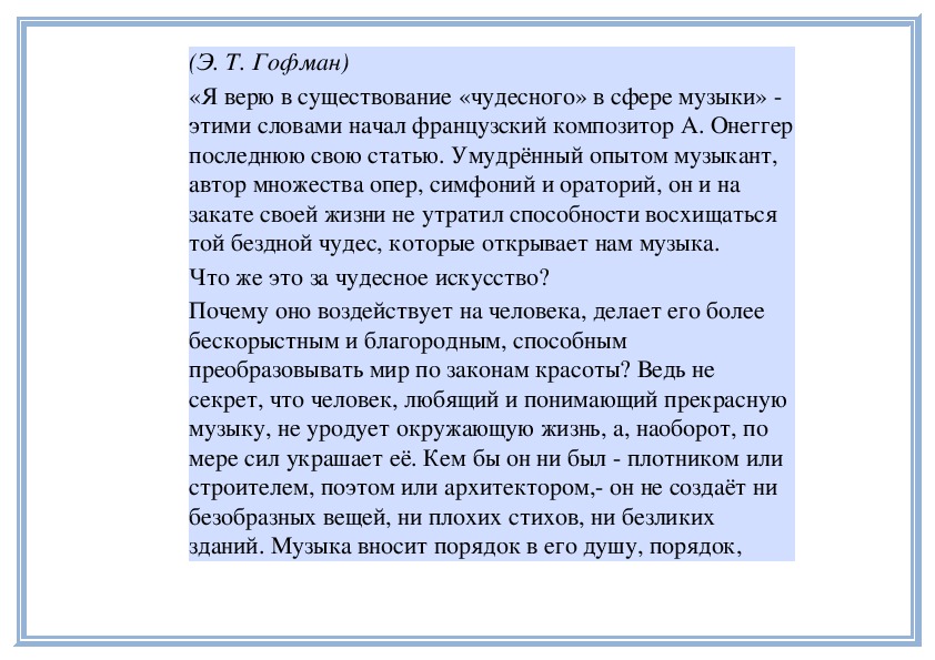 Музыка образует целый мир человеческой жизни. Этот