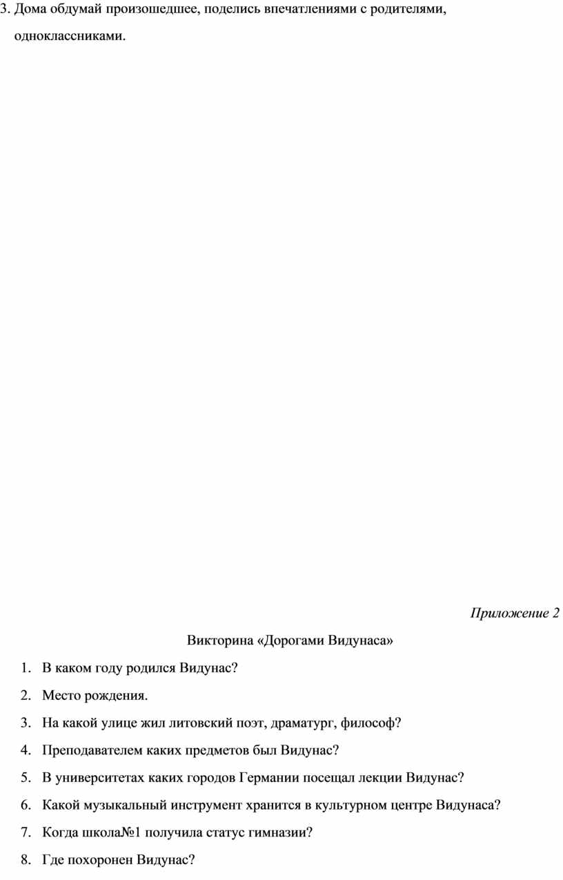 Викторина «Дорогами Видунаса»