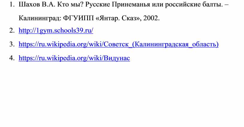 4. Шахов В.А. Кто мы? Русские Принеманья или российские балты. –