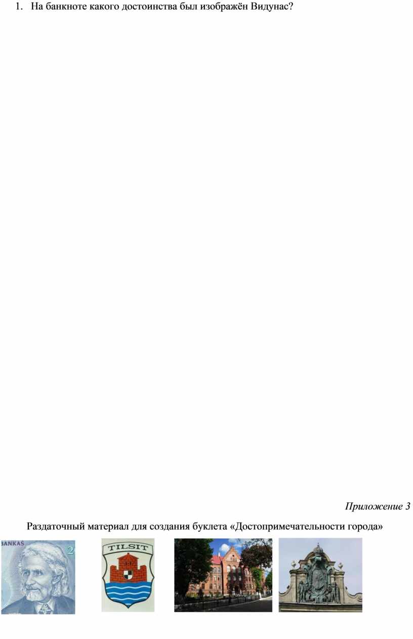 Раздаточный материал для создания буклета «Достопримечательности города»