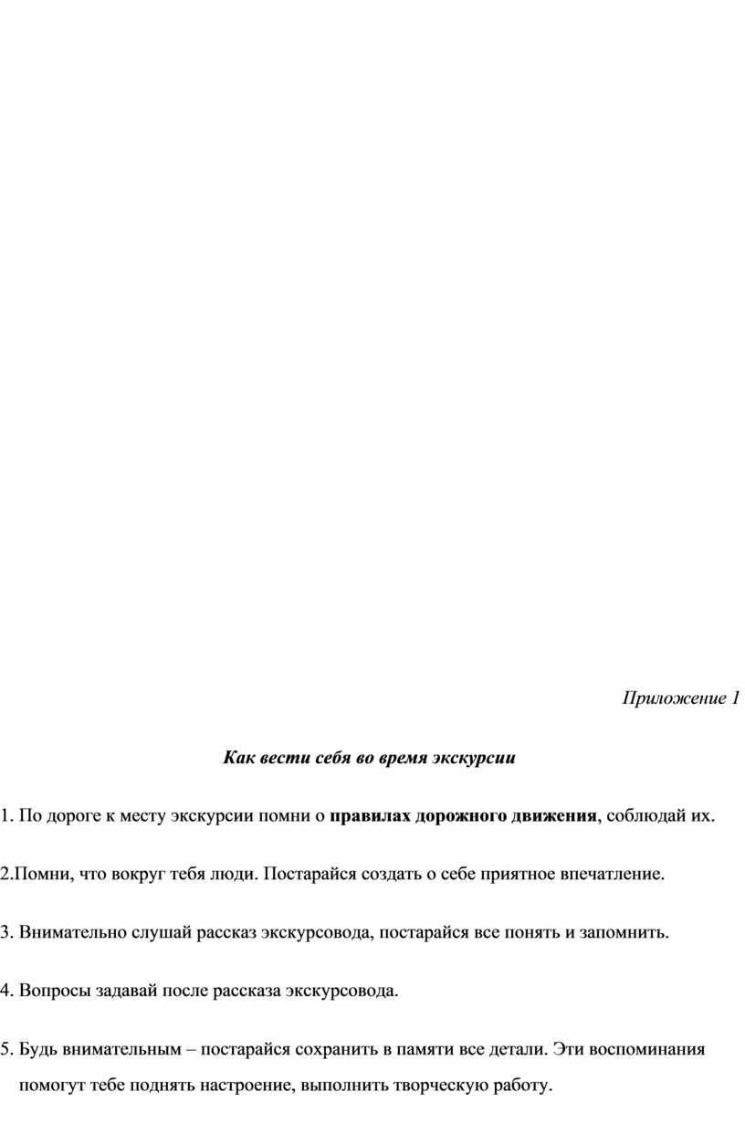 1. По дороге к месту экскурсии помни о правилах дорожного движения, соблюдай их.