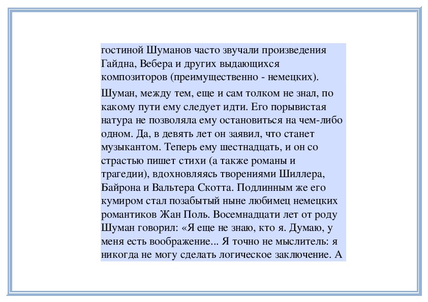 Шуман говорил: «Я еще не знаю, кто я. Думаю, у