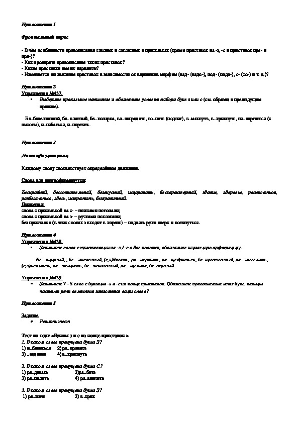 Тест по теме «Буквы з и с на конце приставок »