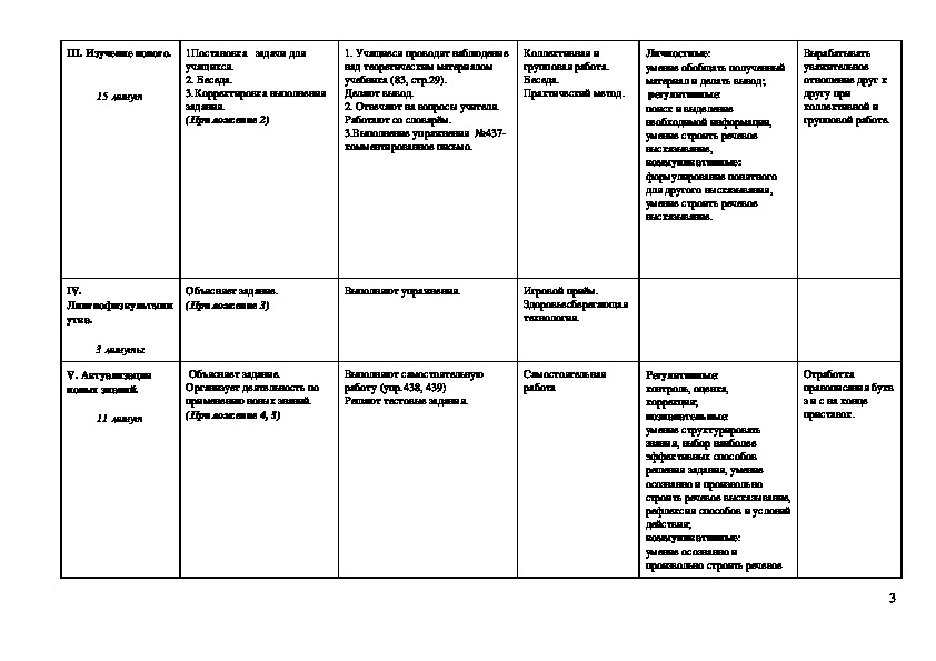 Конспект урока по русскому языку.Цели для учителя