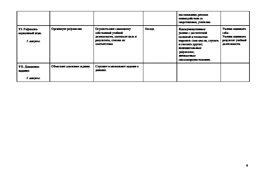 Организует рефлексию.