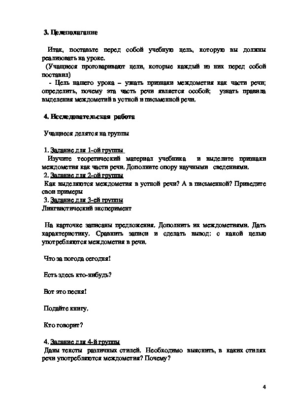 Г) 4я группа: в каких стилях речи употребляются междометия? Почему?