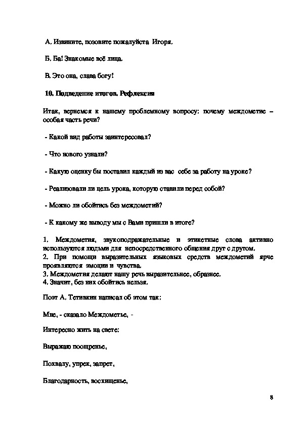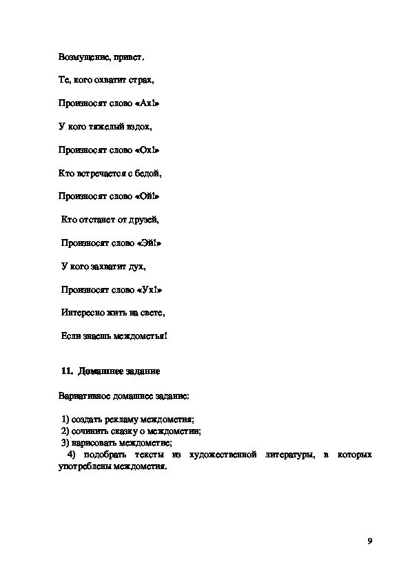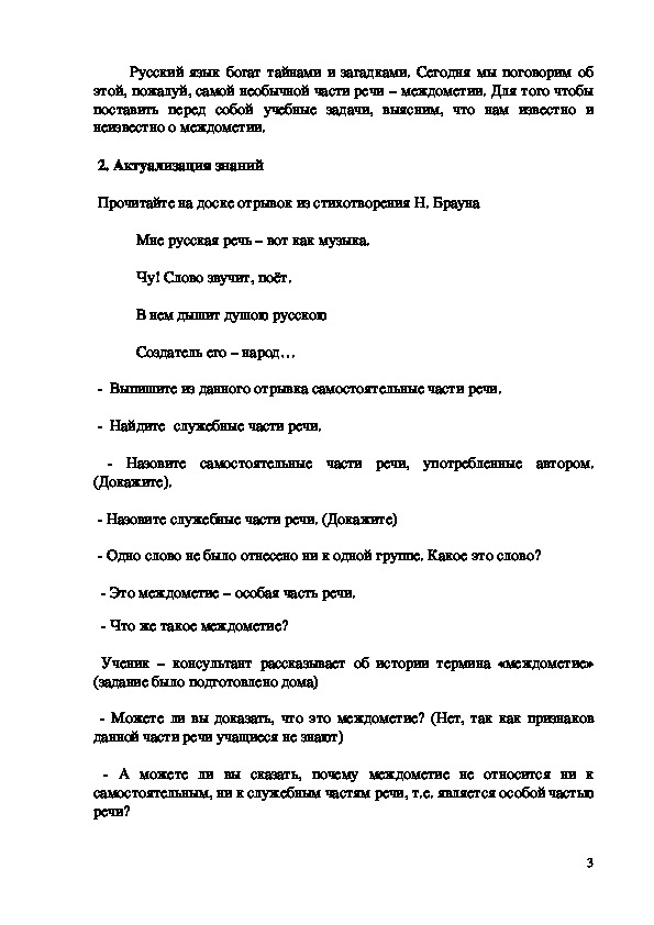Урок русского языка по теме «Междометие как часть речи»