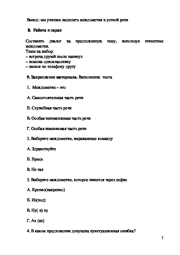 9. Закрепление материала. Выполнение теста