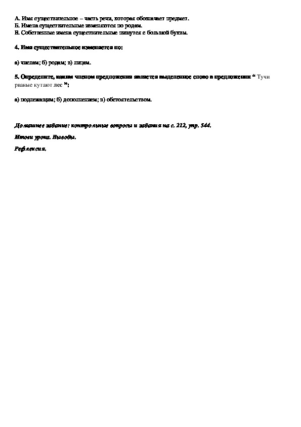 - знать, какую роль могут выполнять имена существительные в предложении, уметь определять, каким членом предложения является имя существительное в предложении.