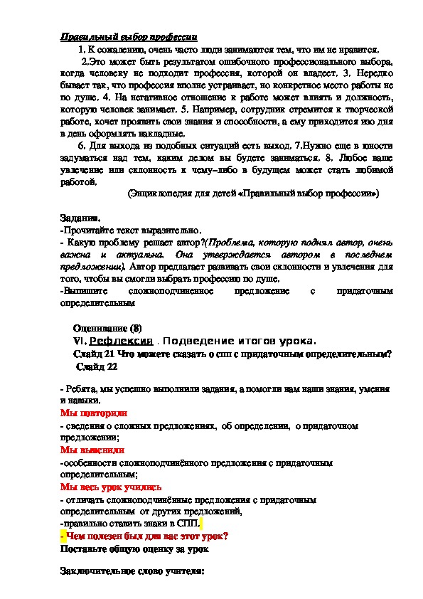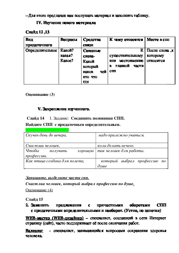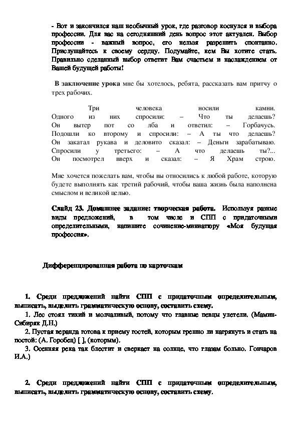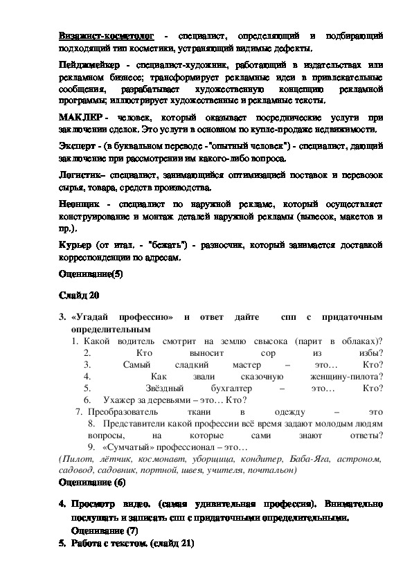 Данный материал предназначен для учителей русского языка. Тип урока-открытие новых знаний. На уроке ребята знакомятся не только с придаточными определительными ,но и с профессиями. На уроке разные виды деятельности: заполни таблицу, посмотри видео и найди предложения с придаточными определительными ,дифференцированная работа, угадай профессию ит.д.