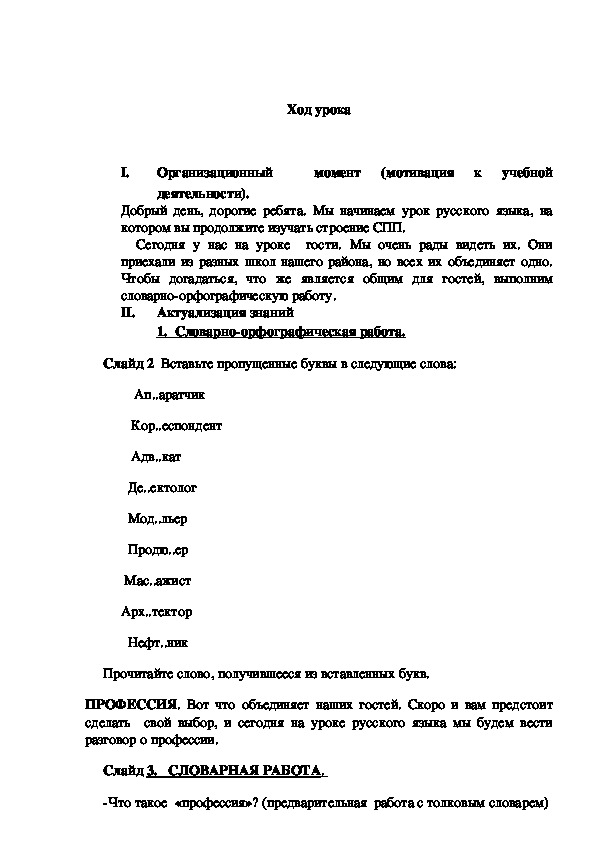 сделать свой выбор, и сегодня на уроке русского языка мы будем вести