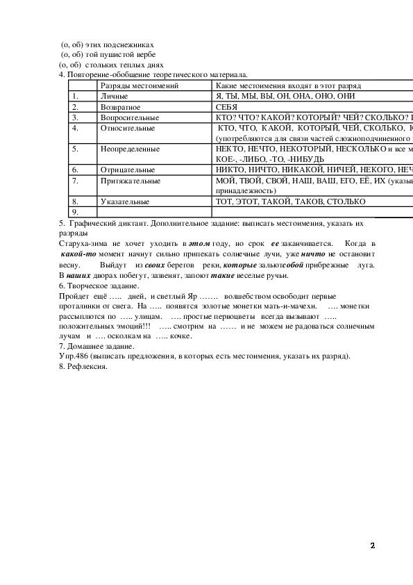 Упр.486 (выписать предложения, в которых есть местоимения, указать их разряд).