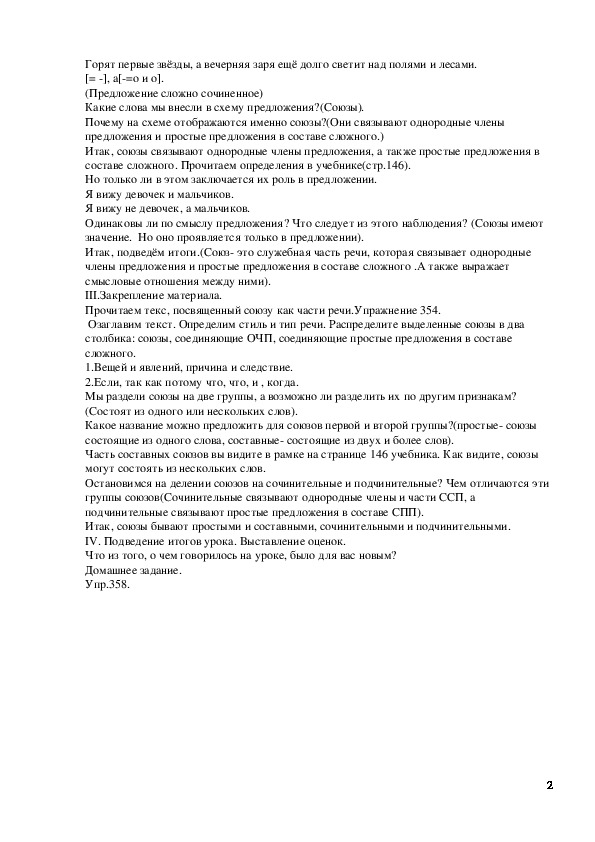 Прочитаем текс, посвященный союзу как части речи.Упражнение 354.