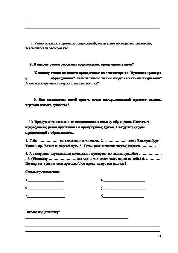 10. Придумайте и запишите подходящие по смыслу обращения. Поставьте