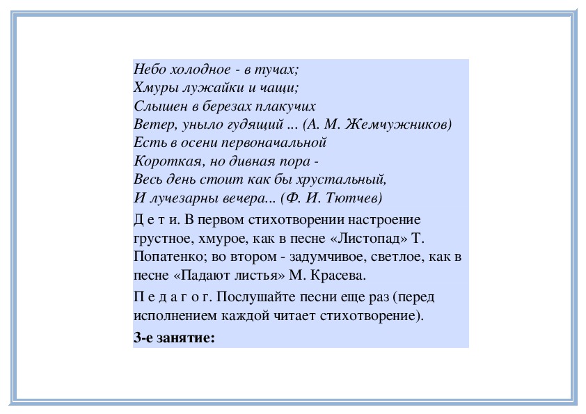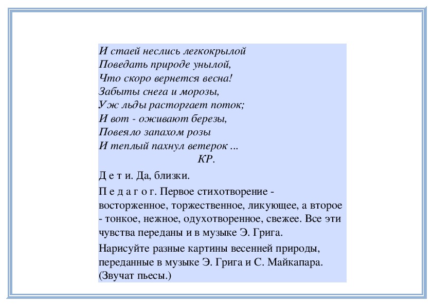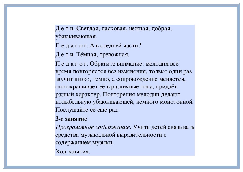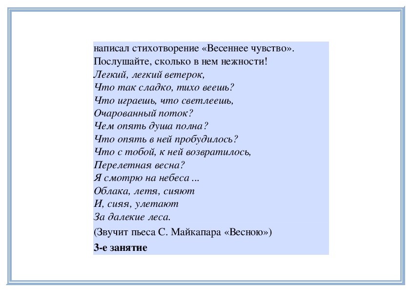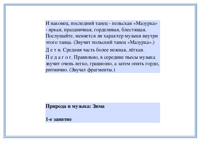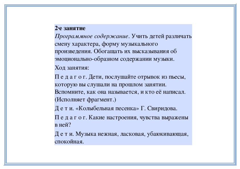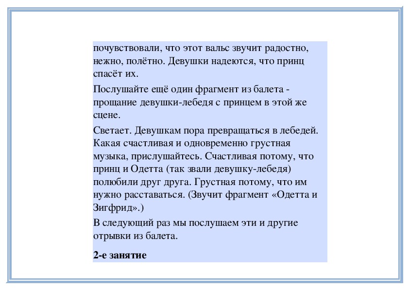 радость, и нежность. (Пьеса звучит повторно.)2е занятие