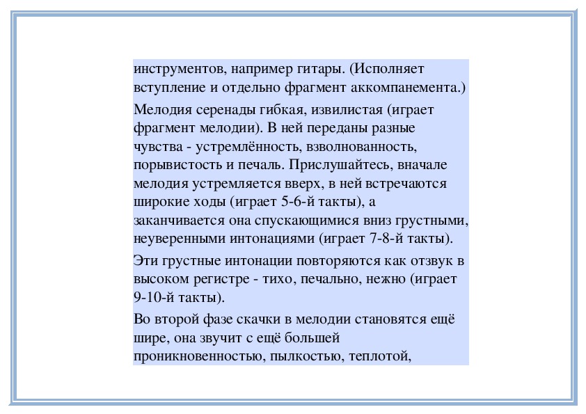 сочетаются в этой серенаде. (Исполняет фрагмент