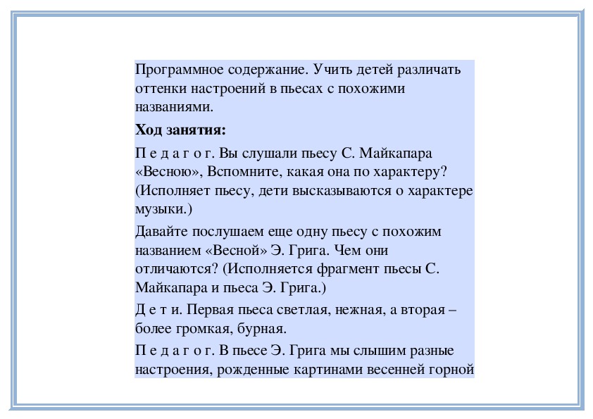 П е д а г о г. Вы слушали пьесу С. Майкапара