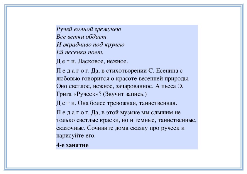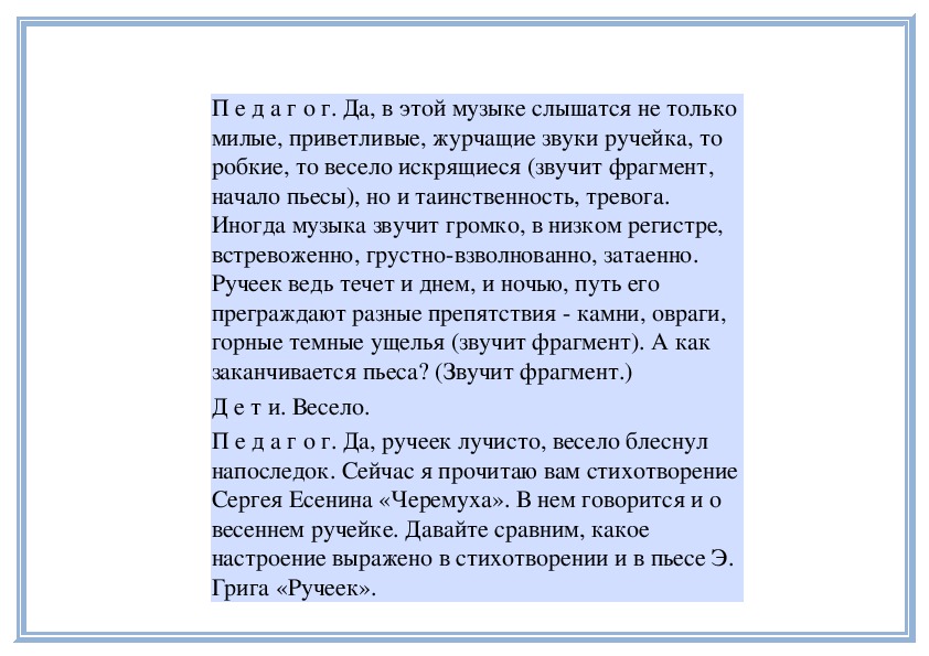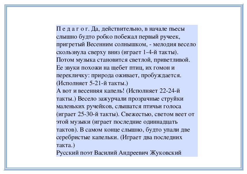 П е д а г о г. Да, ручеек лучисто, весело блеснул